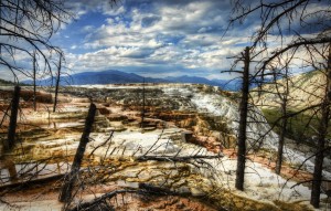 These charred dead trees jutting out of the strange deposits at Mammoth is quite a place. I’m sure that maybe you’ve also heard that Yellowstone is just a simmering super volcano, waiting to erupt at any moment. This always makes me a tiny-bit edgy as I move around the environs. But, I figure, that if I am in any of those states around there while the volcano exploded, I’d probably be dead anyway – so why not be right in the center of the sucker where it is the prettiest? This is not the best logic I have ever used, but it is a subtle use of it, I suppose.